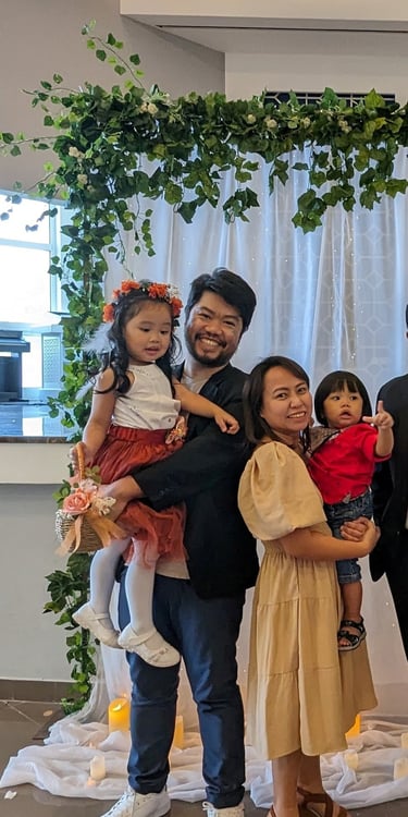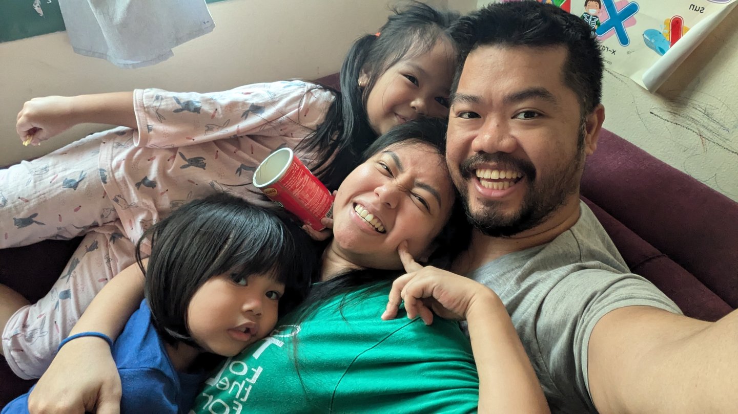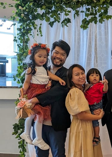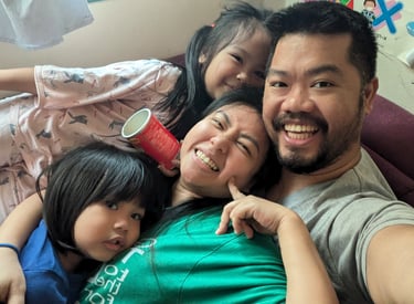 We are the Ramos family—Anne Kristine, Mark Paul, Athalia Chloe, and Yohannan Charles—sharing moments and memories in a soft pink embrace.